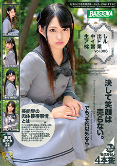 アイドルの宿命、それはプロデューサーへの肉体接待。センターになる為、夢を掴む為、4人のアイドルは生中出しを許す。全ては輝くステージの為に。今回収録のMITUKI。次世代センター間違い無しの逸材。笑うと八重歯が見える素敵な少女。しかしその裏では涙の枕営業が…人気シリーズ第6弾!撮りおろし4人収録!